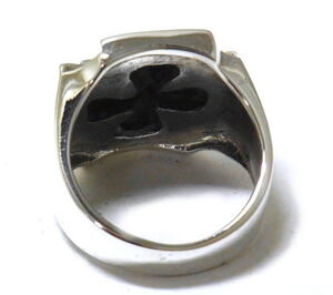 マルタ十字をモチーフに、シンプルなクロスデザインのリングです 前面はフラットではなく、若干丸みを帯びています 一段低い部分にはドット模様にいぶしが入って、立体的なクロスに仕上がっています! 若干裏抜きがあります 普段使いにオススメのリング! 商品詳細 ■素材:シルバー925 ■サイズ:前面幅約19.5mm 背面幅約6mm :厚さ前面約4.7mm 最小1.0mm ■重さ:約13g