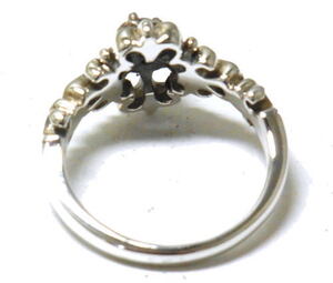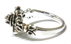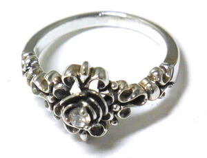 薔薇の花びらの中に1粒キュービックをあしらい、周囲は透かしで仕上げたリング 細身のリングなので、重ねづけにも良いですね。 また、女性にもオススメなのですが、リングサイズが大きめです。 サイズ直し無料・ただし2号程度がオススメ。 商品詳細 ■素材:シルバー925 ■サイズ:前面幅約14mm 背面幅約2.4mm :厚さ前面約6.3 最小1.3mm ■重さ:約5.3g