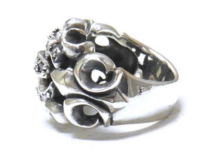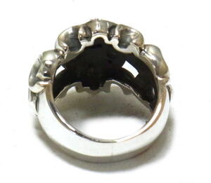 フレアを組み合わせたデザインで、中央のフレアにはブラックキュービックが埋め込まれています 幅太いリングですが、裏抜きがあるため、サイズどおりの着用感だと思います 商品詳細 ■素材:シルバー925 ■サイズ:前面幅約19.5mm 背面幅約6.6mm :厚さ前面約7mm 最小1.7mm ■重さ:約14.5g