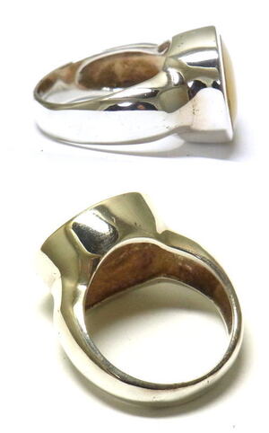 シェル部分が上に出っ張っていて、キュートな印象です サイズは11.5号なのですが、裏抜きがあるため、 12号の指でピッタリかと思います ※指の形にもよります メール便にも対応! ※出来るだけ色味を再現できるように撮影しておりますが、 お使いのブラウザによっても画像と実物が異なることがございます ご了承くださいませ。 商品詳細 ■素材:シルバー925 ■サイズ:前面幅:約14mm(デザイン部横幅16mm)最小4.7mm 前面厚さ:約7mm 最小1mm ■重量:6.8g ■使用石:シェル ■使用石:なし