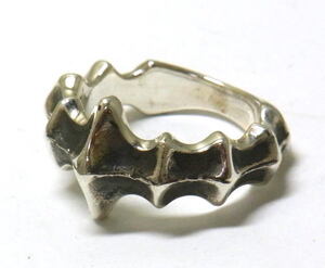 くぼみに燻しが入って、シルバーとブラックの印象的なリングです