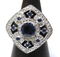 ブルーキュービックをあしらい、周囲はミル打ちのようにデザインされて、まるで石が敷き詰められているようにキラキラします 実は1石だけ小さなダイヤモンドが埋め込まれています(正面画像の下部分の隅) ダイヤのランクは低く、白いです 縦横、約26mmあるので、存在感があります! リングサイズは14号ですが、裏抜きがあるため15号サイズとさせていただきます ※ロジウムコーティングがかかっておりますが、これは経年・摩擦などで薄くなり、下地のシルバーが出てきます。 以降は普通のシルバーリングとしてお手入れいただけます。 サイズ直し可。ただし2号程度まで。別途¥1800円 ■サイズ:前面縦27mm 横26mm 背面幅3.2mm 前面厚み約7mm ■使用石:キュービックジルコニア、ダイヤモンド ■重さ:約9.3g ■素材 :シルバー925/ロジウムコーティング