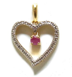 ハート部分はなだらかなカーブで、エレガントな印象です ルビーは透明度がない、ランクの低いものですが、ゴールドとピンクの相性はバツグンです! ハートのシルバー部分は、地金をミル打ち風にデザインしたもの。 実は上部に1石、小さなダイヤモンドが埋め込まれています。 こちらも超小さく、透明度のないものです。 ※ゴールド、ロジウムコーティングがかかっておりますが、これは経年・摩擦などで薄くなり、下地のシルバーが出てきます。 商品詳細 ■サイズ:縦約27mm(バチカン含まず約20mm) 横約19.8mm ■素材:シルバー925(ゴールドゴーティング、ロジウムコーティング) ■重量:約2.7g ■チェーン:付属しません ■使用石:ルビー、ダイヤモンド ■注意:出来るだけ色味を再現できるように撮影しておりますが お使いのブラウザによっても、実物と色味が違うことがございます ご了承くださいませ