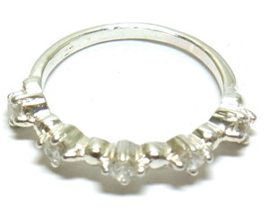 キュービックを5石使ったシルバーリングです。 細身なつくりで、ピンキーとしてもお使いいただけます ただ、石の並びの関係で、両サイドの石部分が、隣の指に当たります ピンキーの場合はちょっと外側に向けてつけると当たりませんが、 ご了承の上、ご注文くださいませ。 ■サイズ(9号):前面幅約3.4mm 背面幅約0.9mm 前面厚み約3mm(石部) リング厚:最小0.7mm ※サイズによって、リング背面の厚み・幅に差が有ります。 ■使用石:キュービックジルコニア ■素材 :シルバー925