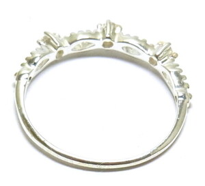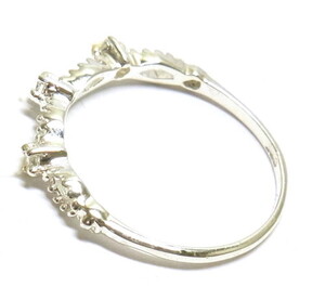 キュービックを3石使ったシルバーリングです。 細身なつくりで、ミル打ちのデザインと透かしが石の合間にあります 華奢で細身、デザインが一周しているように見えます (実際は前面のみのデザインです) ■サイズ(13号):前面幅約2.8mm 背面幅約1mm 前面厚み約3mm(石部) リング厚:最小0.6mm ※サイズによって、リング背面の厚み・幅に差が有ります。 ■使用石:キュービックジルコニア ■素材 :シルバー925