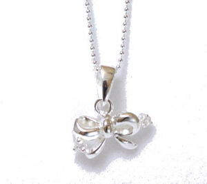 リボンはラインがアシメトリで、甘くなりすぎない! オフィスシーンでも使えそうですね! トップの大きさは横約14mm。 平均的に、40cmは女性の鎖骨下にトップがくる長さです。 ■材質:シルバー925 ■サイズ:トップ縦約8mm(バチカン含まず)横約14mm ボールチェーン0.8mm 40cm ■使用石:キュービックジルコニア