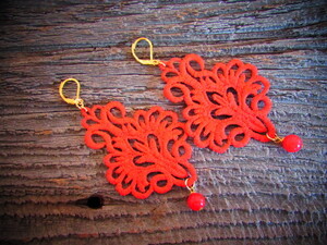 Tita Bijoux レースで出来たステンドグラスを思わせるデザインのハンドメイドピアス(イタリア)