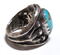 石はナチュラルのキングマンターコイズを使用。 艶あり。向かって左がやや薄いブルー メタルという、銀を溶かして叩いて作る技法で、無骨な雰囲気があります。 号数は16.5号なのですが、幅があるので、1号程度小さく感じると思います(15.5〜16号な着用感) ※厳密にいえばインディアン作ではないので、 インディアンジュエリーではありませんが、作風から、インディアンジュエリーとカテゴリーさせていただいております ハンドメイドのため一点もの。 出来るだけ色等を再現できるように撮っていますが、 お使いのブラウザによっても色味が多少異なることがございます。ご了承ください。 ■素材:スターリングシルバー ■サイズ:前面幅24.5mm 最小幅8mm 厚さ約1.7〜3.6mm(石部のぞく) ■リングサイズ:16.5号