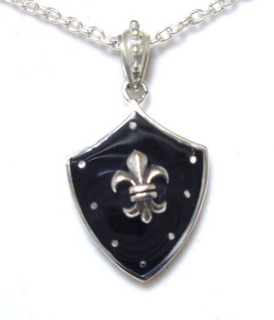 ブラックエナメルを使ったシールド(盾)のようなデザイン シルバーのフレアがアクセントです(ちょっと曲がっているのも味があります) カジュアルに普段使いできそうです 商品詳細 ■サイズ:縦約37mm(バチカンのぞき約25.5mm) 横:約20mm ■素材:シルバー925 ■重量:約7.4g ■チェーン:付属しません ■注意:出来るだけ色味を再現できるように影しておりますが お使いのブラウザによっても、実物と色味が違うことがございます ご了承くださいませ