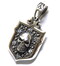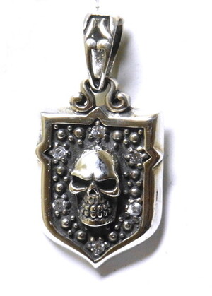 中央にスカルを埋め込み、周囲にはキュービックがきらりと輝きます エンブレム型で、程よい大きさ、黒仕上げとなっております ※裏面のシールは管理番号のため、出荷時は外してきれいに磨きます 商品詳細 ■サイズ:縦約37.5mm(バチカン除き約28.5mm) 横:約19mm ■素材:シルバー925 ■重量:約10.5g ■チェーン:付属しません ■注意:出来るだけ色味を再現できるように影しておりますが お使いのブラウザによっても、実物と色味が違うことがございます ご了承くださいませ