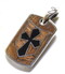 ブラックエナメルを使ったクロスをアクセントに、木目にシルバーの枠を使ったプレートデザインペンダント。