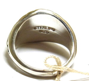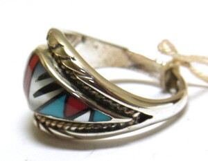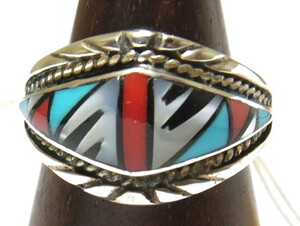 デザインはインディアンですが、アメリカインディアン作のリングではありませんので、厳密にはインディアンジュエリーではありません。 色とりどりの模様が、目を引くデザインリング シェル以外の石は練りのようです。 ※リング自体は16号ですが、前面に幅があるため、0.5〜1号程度きつく感じます。15〜15.5号の着用感です。(指がムチムチタイプの場合) ※インディアンジュエリーとは:本国アメリカではネイティブアメリカンが作ったものだけを「インディアンジュエリー」とし、モチーフが同じでもそれ以外が作ったジュエリーを「インディアンジュエリー」として販売することは違法となります 日本ではそのような規制がないのですが、当店では本物の「インディアンジュエリー」を取り扱っておりますので、それ以外は区別しております。 ※出来るだけ実物に近いよう撮影しておりますが、お使いのブラウザによっても色味が異なる場合があります。ご了承くださいませ 商品詳細 ■サイズ:前面縦幅:約13.7mm 背面幅:約3mm ■厚さ:前面約4.8mm 背面1.3mm ■重さ:7g ■素材:シルバー925 ■使用石:シェル、珊瑚(練り?)、ターコイズ(練り?)