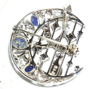 【碌山】ラピスラズリ 月夜と猫のペンダントブローチ[202C0729-TY]