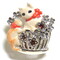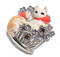 ネコの体の部分には樹脂エナメルを使用しており、猫の毛並みと鮮やかな色合いを実現しています。また、親猫が入っている花束のかごには、ガーネットがあしらわれており上品な輝きを放ちます。