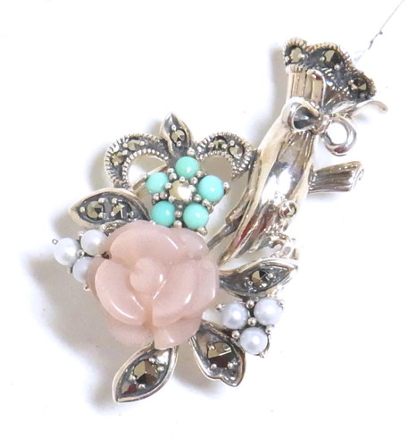 【碌山】ピーチムーンストーンのバラの花束 ペンダント ブローチ[204C1149]