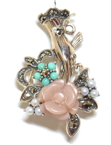 アンティークブランド碌山から、ピーチムーンストーンとターコイズを使ったペンダントブローチ入荷です