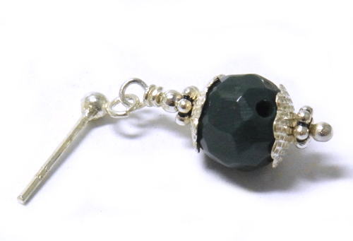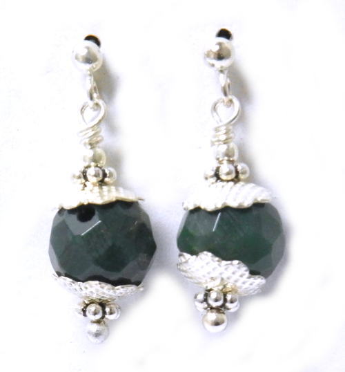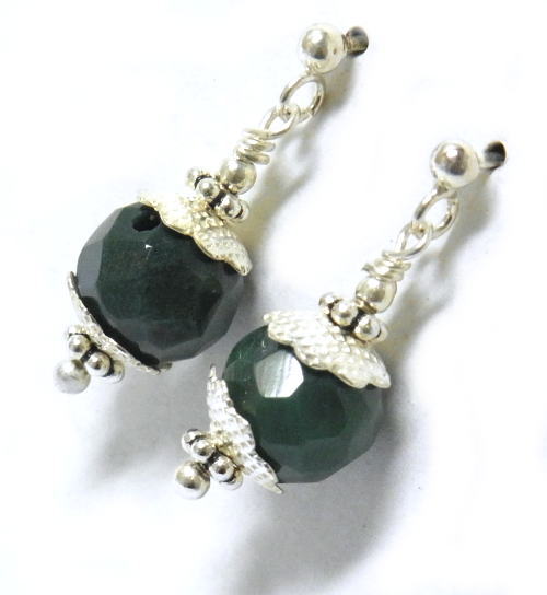 ダークグリーンの石とエスニックなシルバービーズを使った、