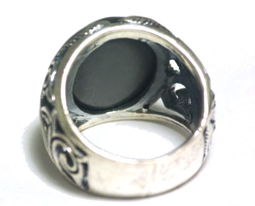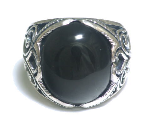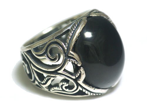 前面に大きなオニキスを配置した、唐草リング。