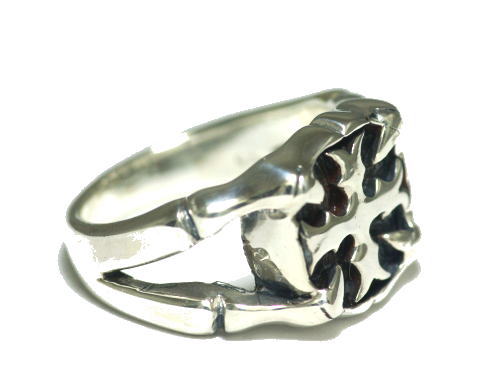 クロスの紋章を、4つの爪で支えるデザインのリングです。