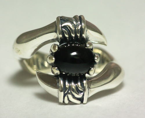 リングの腕の部分はなだらかなラインを描き、オニキスを引き立てます。