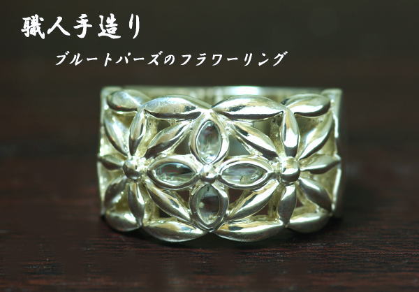 やわらかい水色のブルートパーズを中央に4石埋め込んだ、