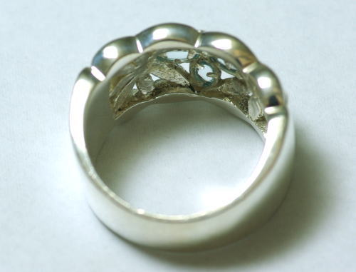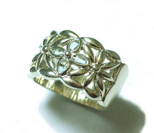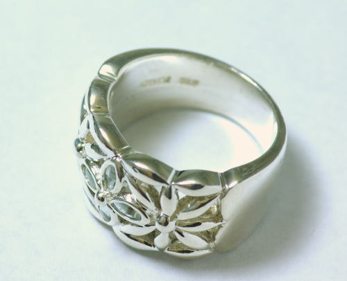 サイズは13号ですが、幅があるリングのため、きつく感じると思います。