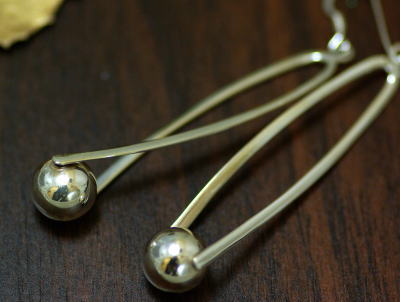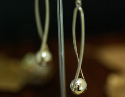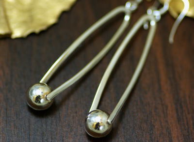 中空の玉を抱えるような、ひねりの入ったラインのピアス。