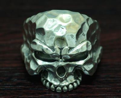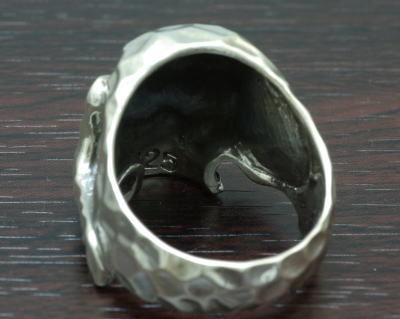 鎚目が美しい!スカルリング登場 裏抜きありのため、実際サイズより大きく感じます。 サイズ直し可 26号のため、2号程のダウン・アップが形を崩さない限度です。 それ以上の直しは、リングの内側(指の腹側)が楕円になります。 また、号数に関わらず、鎚目が多少ずれます