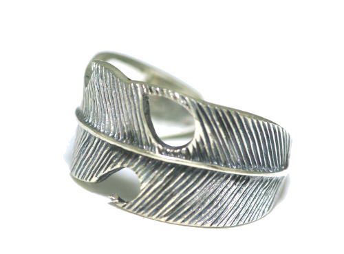 一枚の羽をぐるりと巻きつけたようなリングです。