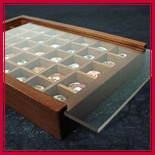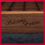薩摩ボタン15mm(別売)を40個収納できるロゴ入り桐製コレクションボックス。