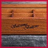 薩摩ボタン25mm(別売)を15個収納できるロゴ入り桐製コレクションボックス。