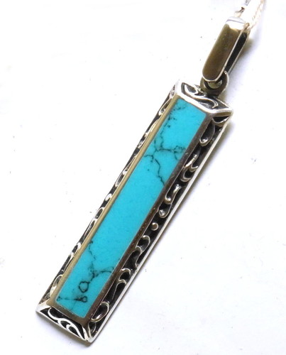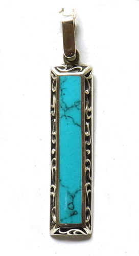 ターコイズの唐草ロングプレートペンダント(トップのみ)[mp0370]