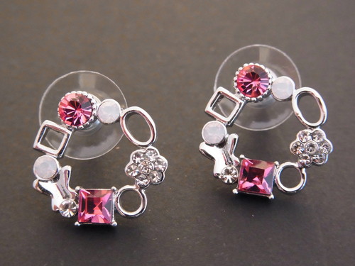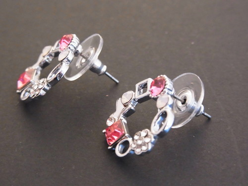 リースタイプにピンク系2種とクリアのスワロフスキークリスタルが埋め込まれています。