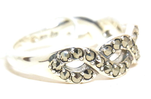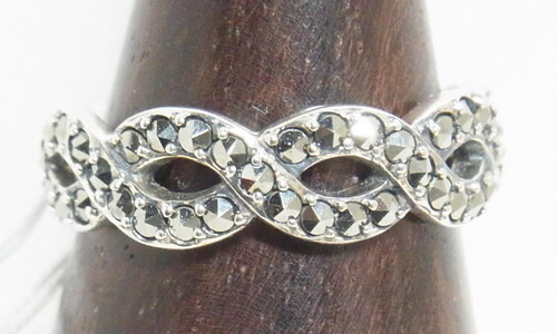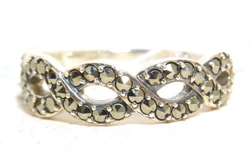 ヨーロッパをイメージさせるロープの模様に、マルカジットをびっしりとセッティングした一文字風のリング。