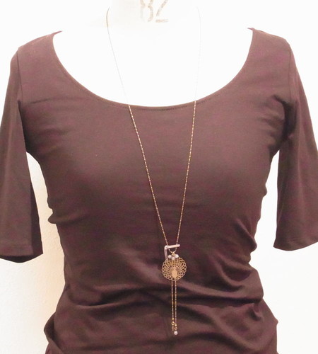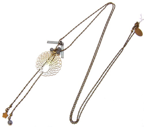 ネックレスと同じチェーンがモチーフの下に垂れ下がるように付いて、