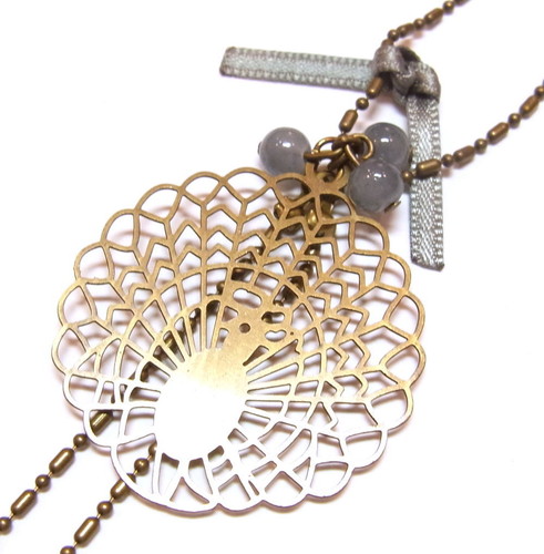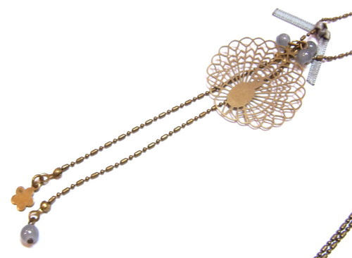 その先には小花やビーズがアクセントに付いています!真鍮のいぶした色合いが、アンティークな雰囲気です