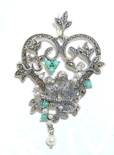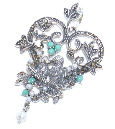 愛らしい小鳥たちが寄り添う様子を、繊細なシルバーワークで表現した物語のようなペンダント