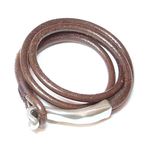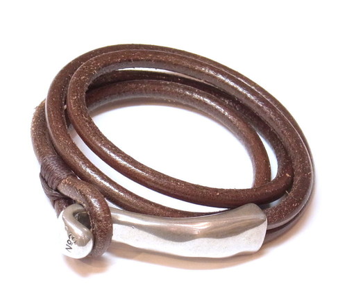 NO.3 ロープタイプカーフ革とシルバー合金の2巻グルグルブレスレット(スペイン[No3PUL0025]