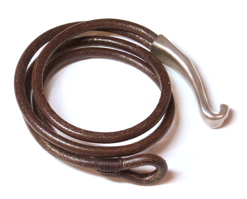 カーフ革の先端が輪になっており、シルバー合金の留め具を引っ掛けてのご利用です