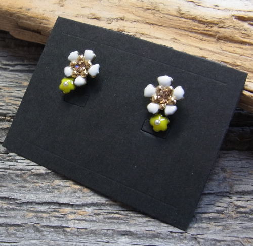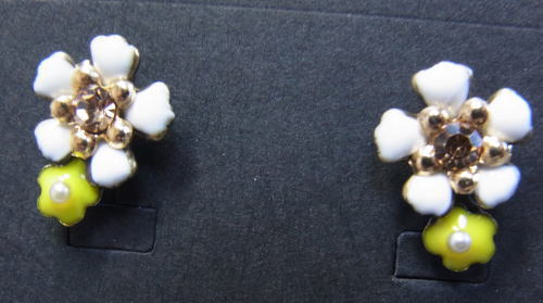 白と黄色の花に、スワロと小さなパールがあしらわれたピアスです