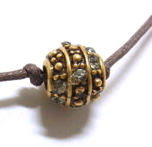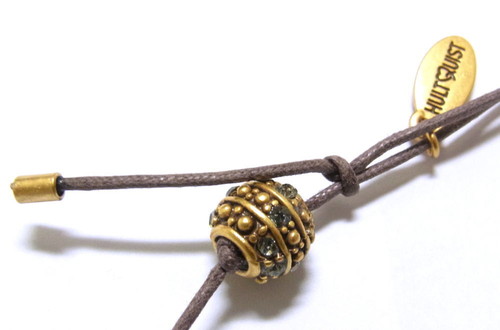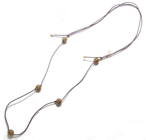 スワロフスキーの埋め込まれたビーズを5つ使った、ヒモネックレスです。