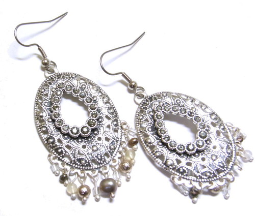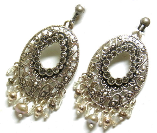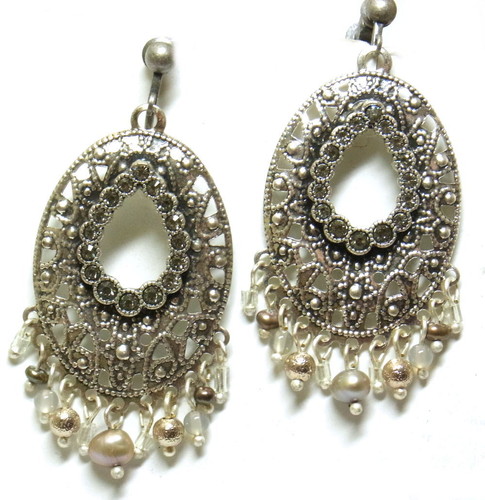スワロをあしらった透かしデザインから、パールやビーズがしゃらしゃらと揺れるピアス&イヤリングです