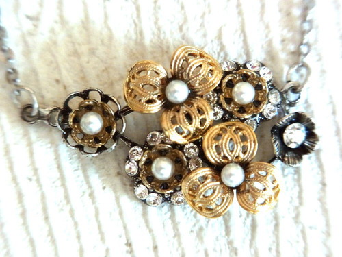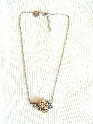 Eric et Lydie ゴールドの花とスワロフスキークリスタルの花が煌めくシルバーネックレス(フランス(ERKC5)