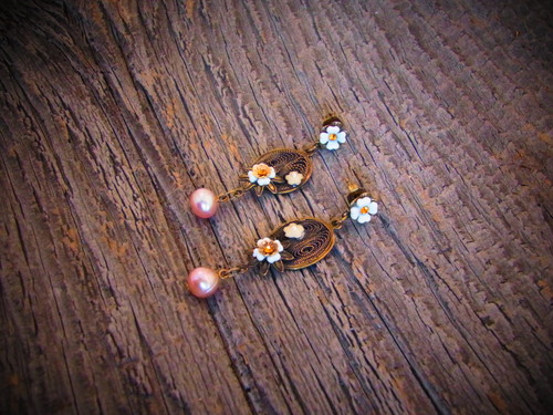 素材・・・真鍮 スワロフスキークリスタル 淡水パール エナメルペイント