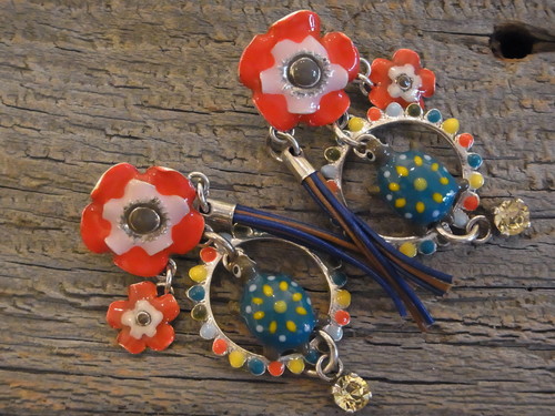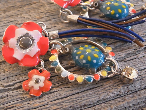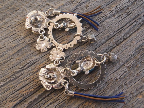 素材・・真ちゅう スズ合金 シルバーコート 鏡面、オキシダイズ、エポキシエナメル スワロフスキークリスタル レザータッセル