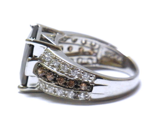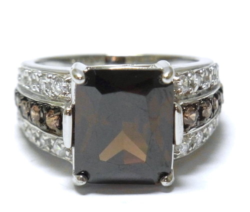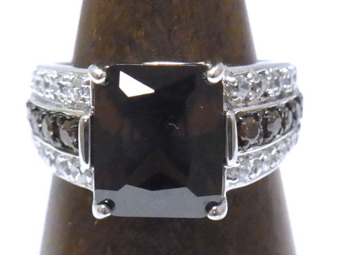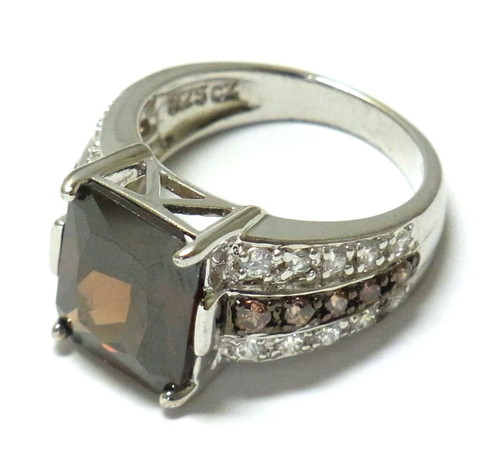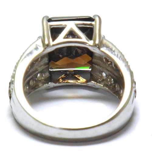 スモーキーカラーの四角いキュービックを使った、シックなデザインリングです