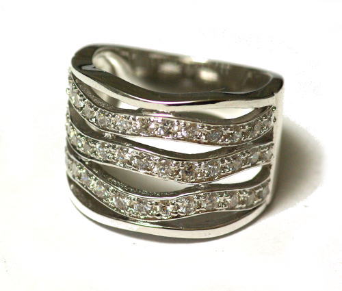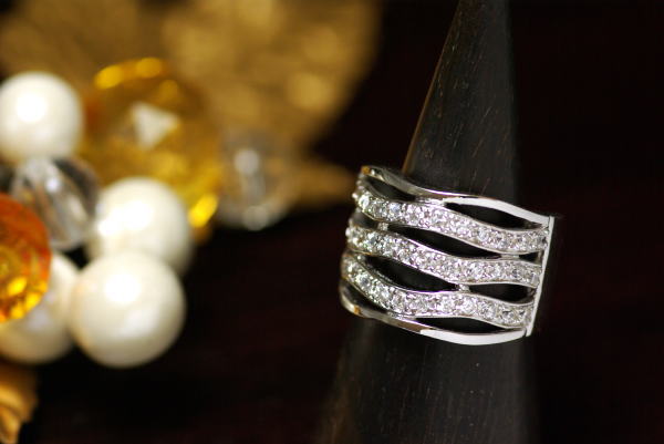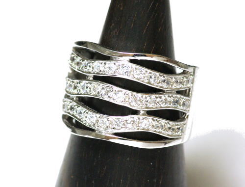 3本のラインにキュービックをずらっと埋め込んだデザインリング!