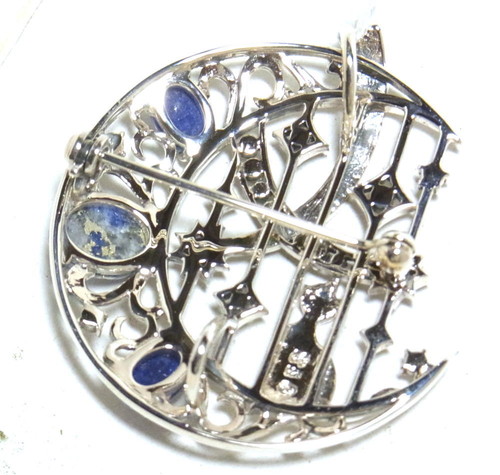 深い青色のラピスラズリがアクセントになったペンダントブローチです