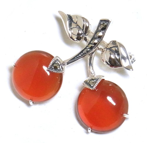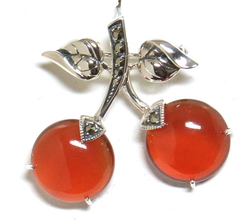 【碌山】カーネリアンのさくらんぼのペンダントブローチ[202C0616-TY]