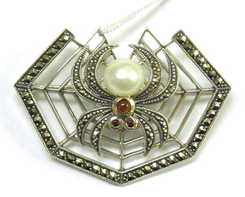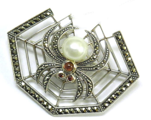 ちょっとコケティッシュなクモを中心に、マルカジットで縁取られた蜘蛛の巣をデザイン